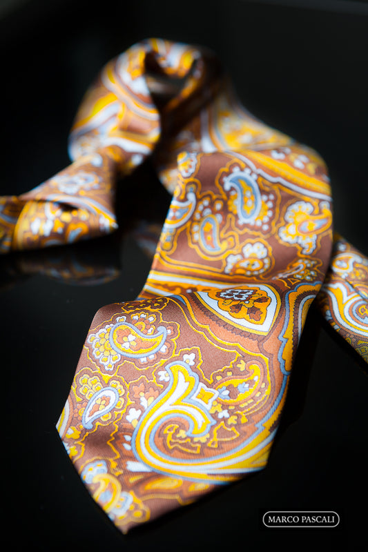 The story of Marco Pascali is a tale of persistence, courage, and opportunity. Founded in 1973 and lead by Don Marcos which at the time had already over 15 years working for one of the top tie manufacturers worldwide named "Richel”, soon started to make a name among retailers with his collection as they all saw in the ties quality and design an opportunity to allure new customers that were becoming more demanding season after season.